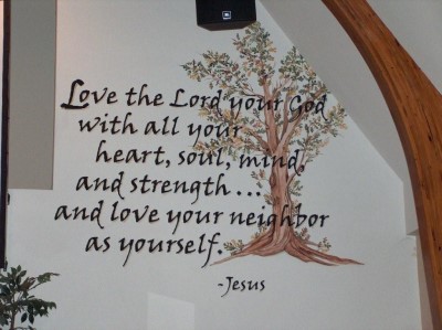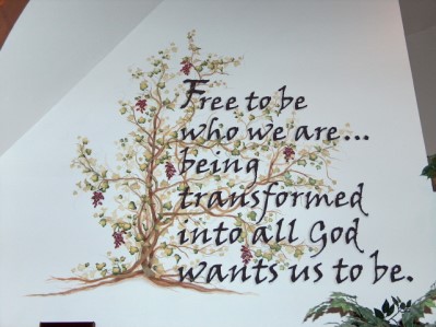This is the second part of the high lettering murals for the Cold Springs Community Church. The murals flank either side of the main platform in our worship center.