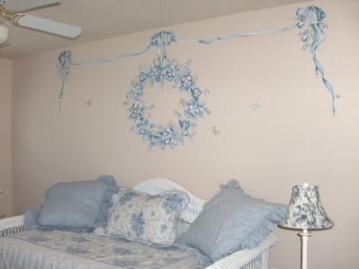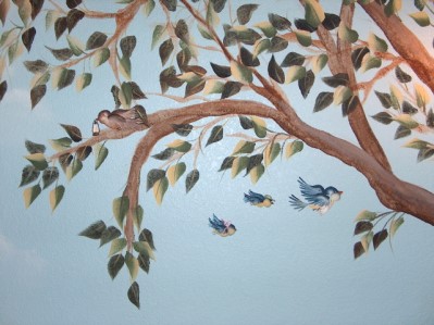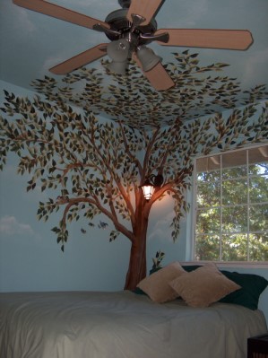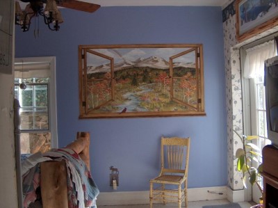 This mural is painted in an historic Bed and Breakfast in Placerville. While the rest of the home has a traditional Victorian era feel to it, the master bedroom reflects the personality and humor of the homeowners.