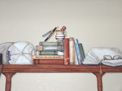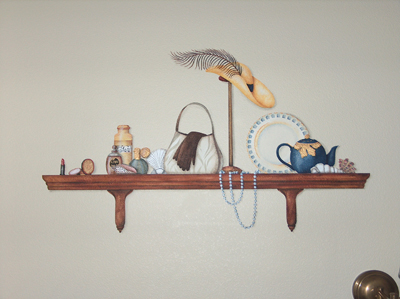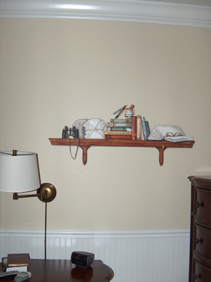 This is another example of a trompe l’oeil shelf. Imagine a shelf you never have to dust!