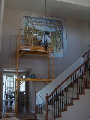 As you can see, this work of art took place in the air. The bottom of this large mural was 12' off the ground. This was a large, grand entryway with an 8' x 10' empty niche.