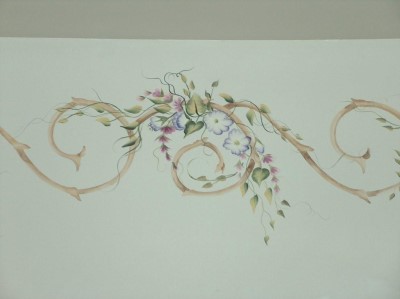 This motif is a combination of traditional stenciling with free hand and free form stenciling techniques.