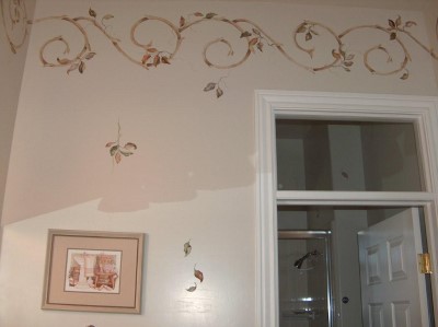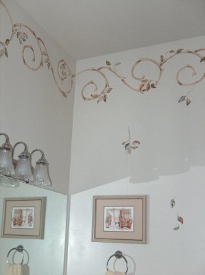 We designed the scroll and flowers for one bathroom and liked it so much, we decided to use it with leaves for the guest bathroom.